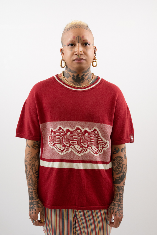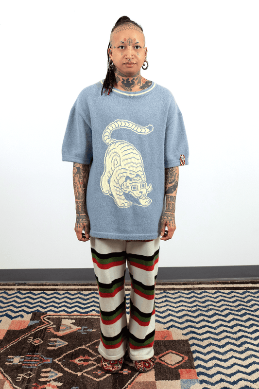 Intarsia Knit Boxy Tshirt // Bean/Frost