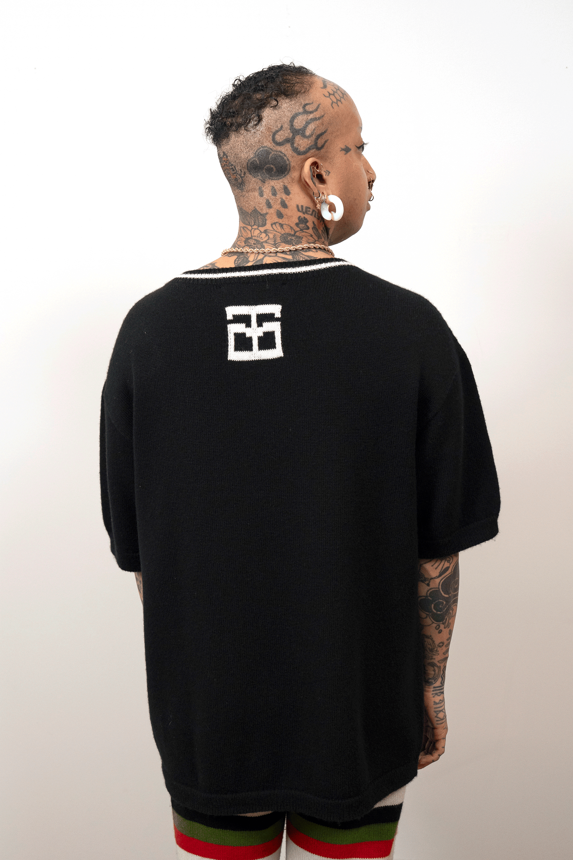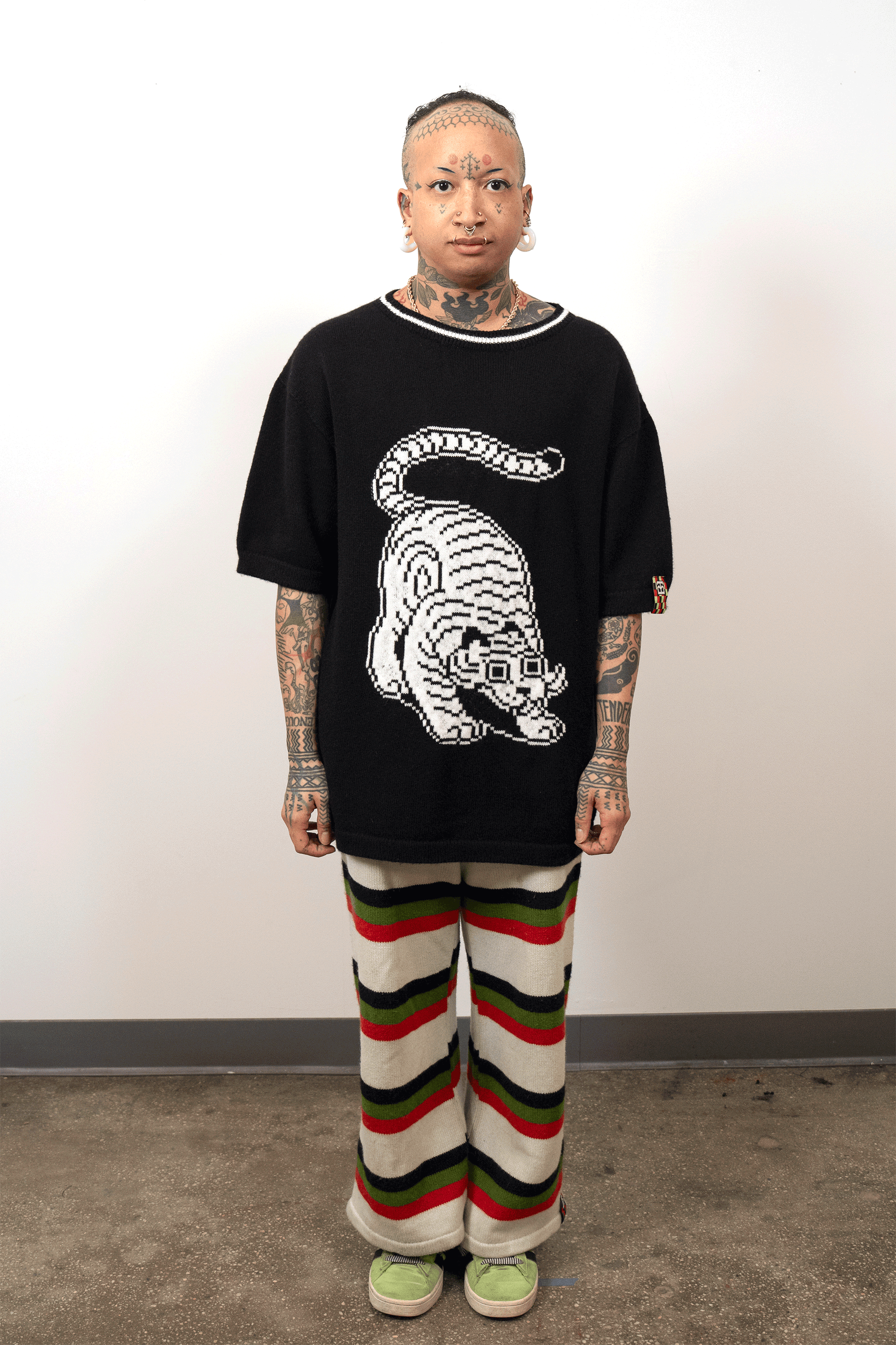 Our new oversized tee in a thick cashmere blend. This fluffy tshirt sweater features a pouncing Tigerbob and contrasting trims. Infinitely soft, cozy and wonderful to wear layered or on its own.